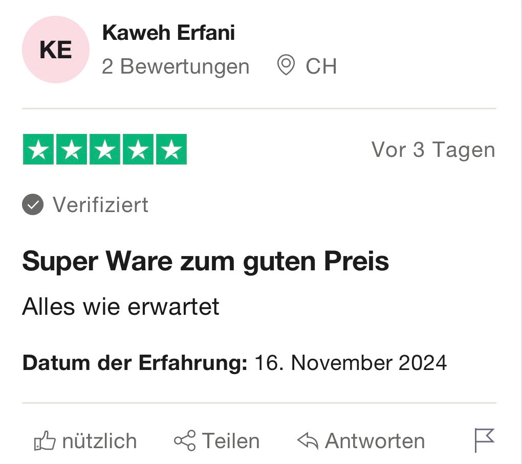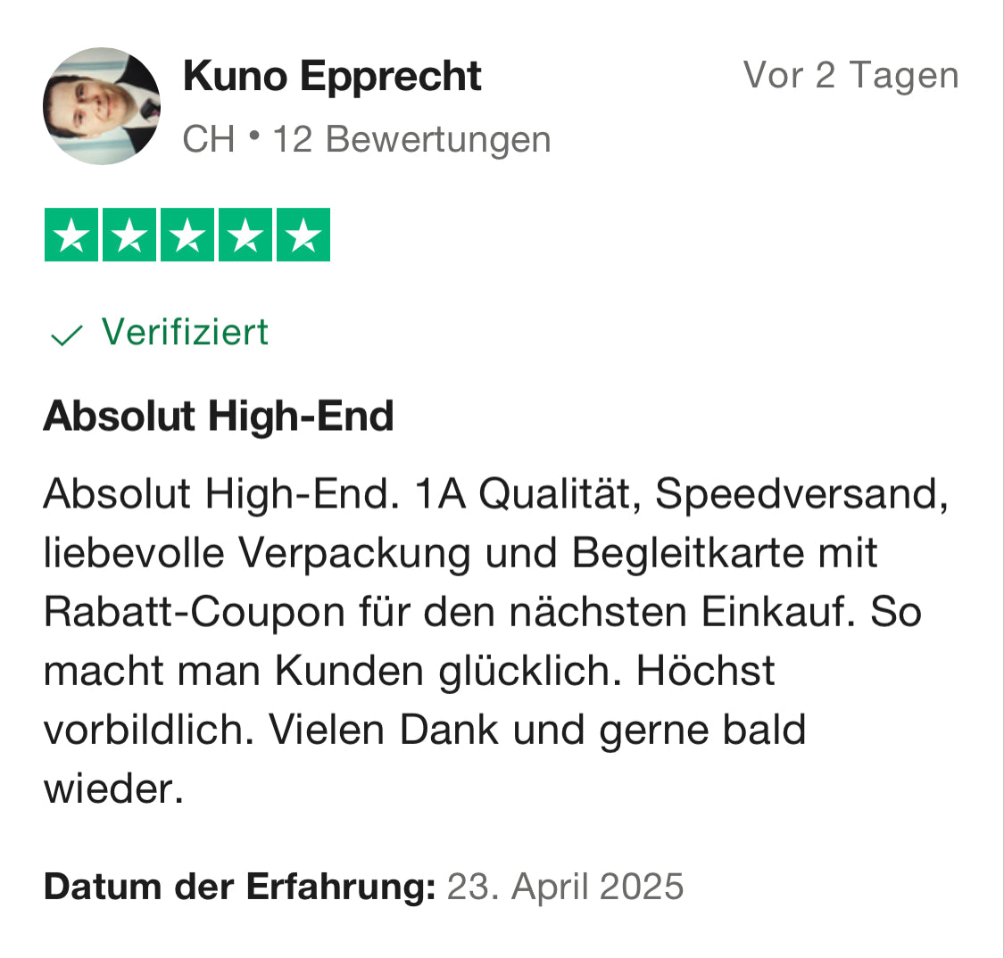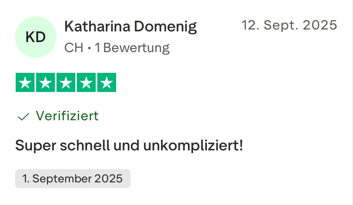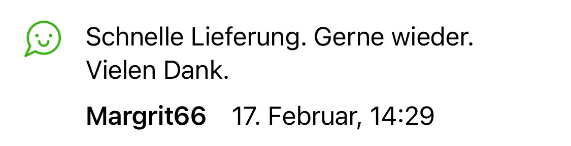 Keine mühsamen Wartefristen wie bei Online-Markplätzen. Wir versenden die Artikel 1-2 Werktage nach Bestellungseingang!