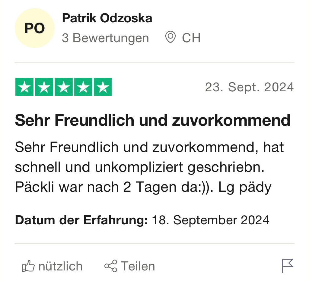 Keine mühsamen Wartefristen wie bei Online-Markplätzen. Wir versenden die Artikel 1-2 Werktage nach Bestellungseingang!